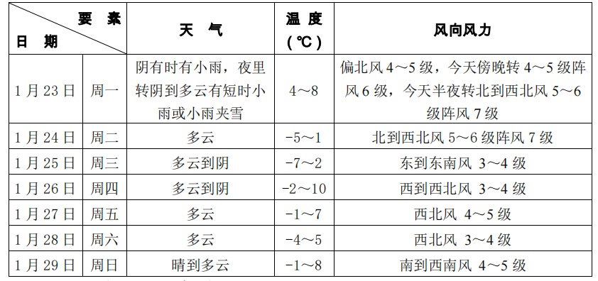 23日中午起偏北风开始增大,23日夜里至24日白天最大阵风6~7级,长江口区7~8级,24日夜里风力逐渐减弱。
