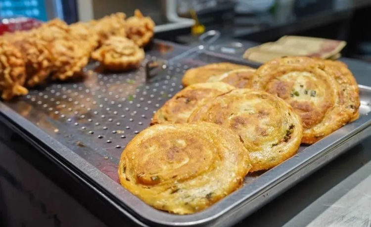 对于上海小囡来说,葱油饼一定不陌生。在风情街中就有这么一家店。这家店的葱油饼手掌大小,刚煎出来的饼,一口咬下去酥脆无比,咸味刚刚好,葱油的香气混合着微微的猪油香,三下五除二就一个下肚啦~