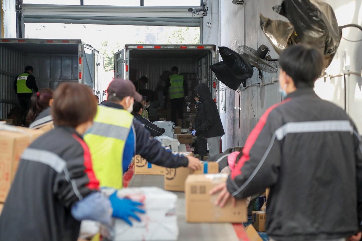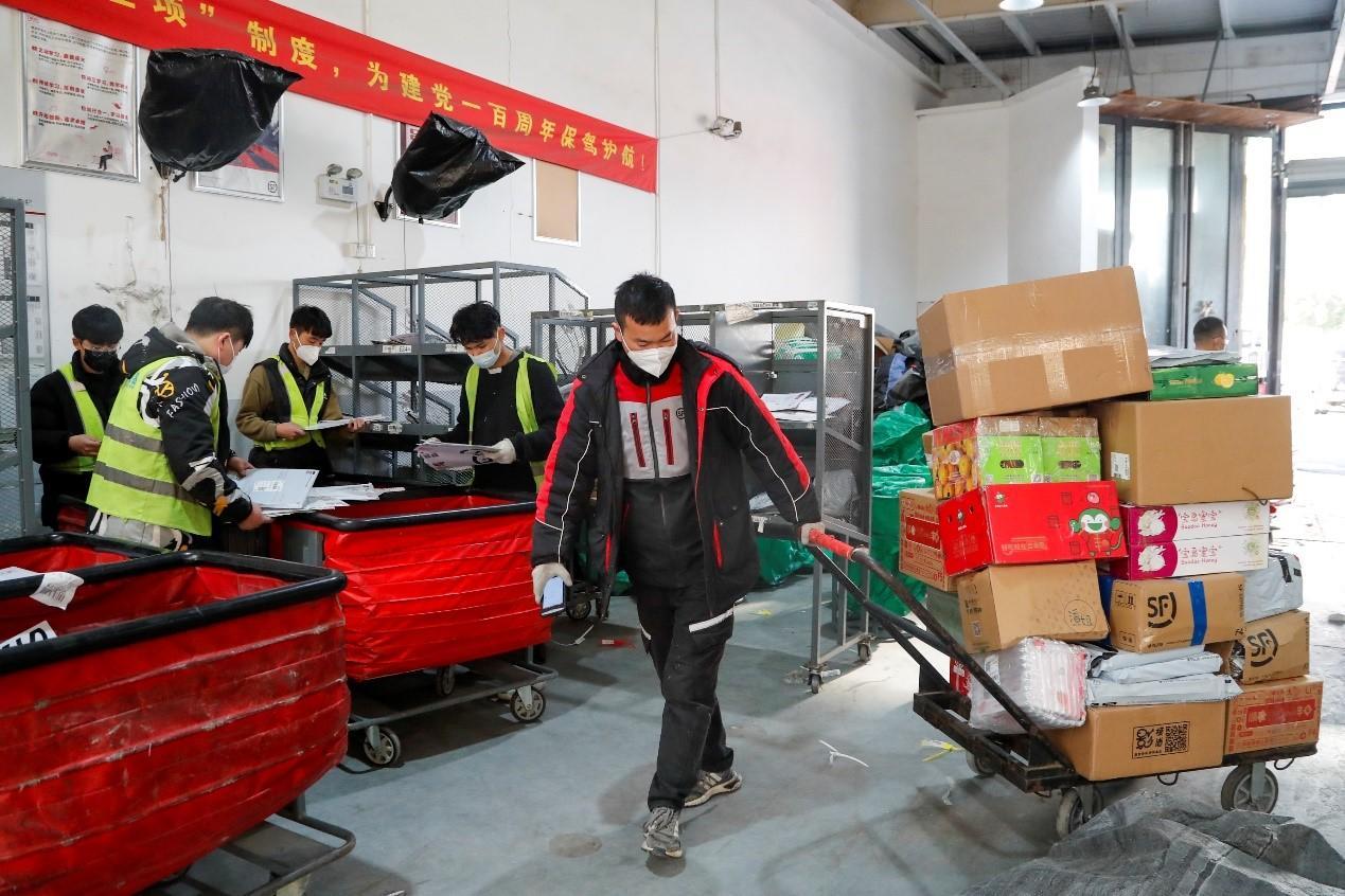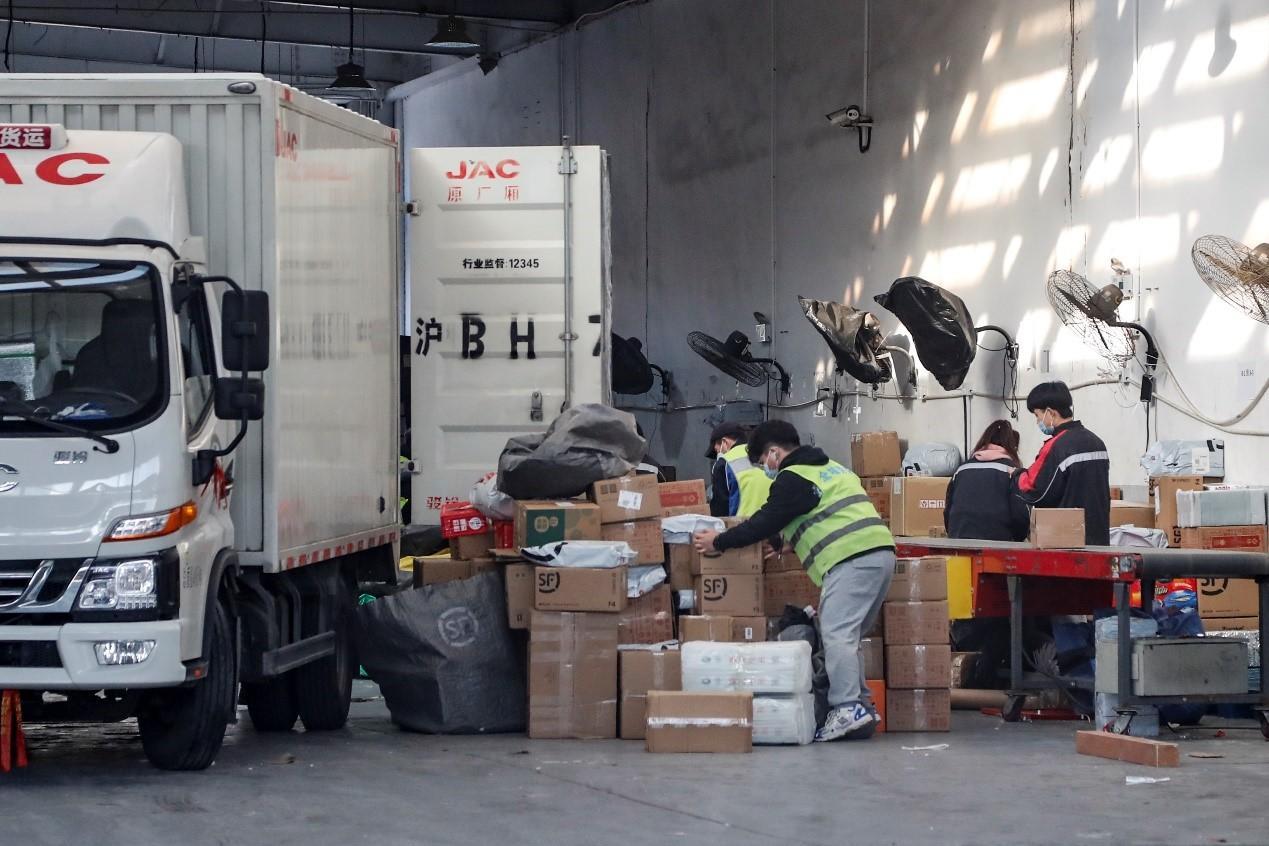 龙华东路522号,是顺丰快递打浦业务部的地址。临近过年,这里的忙碌气氛一点不输平日,站内工作人员各司其职,只为第一时间把快递完好无损地送到居民手中。