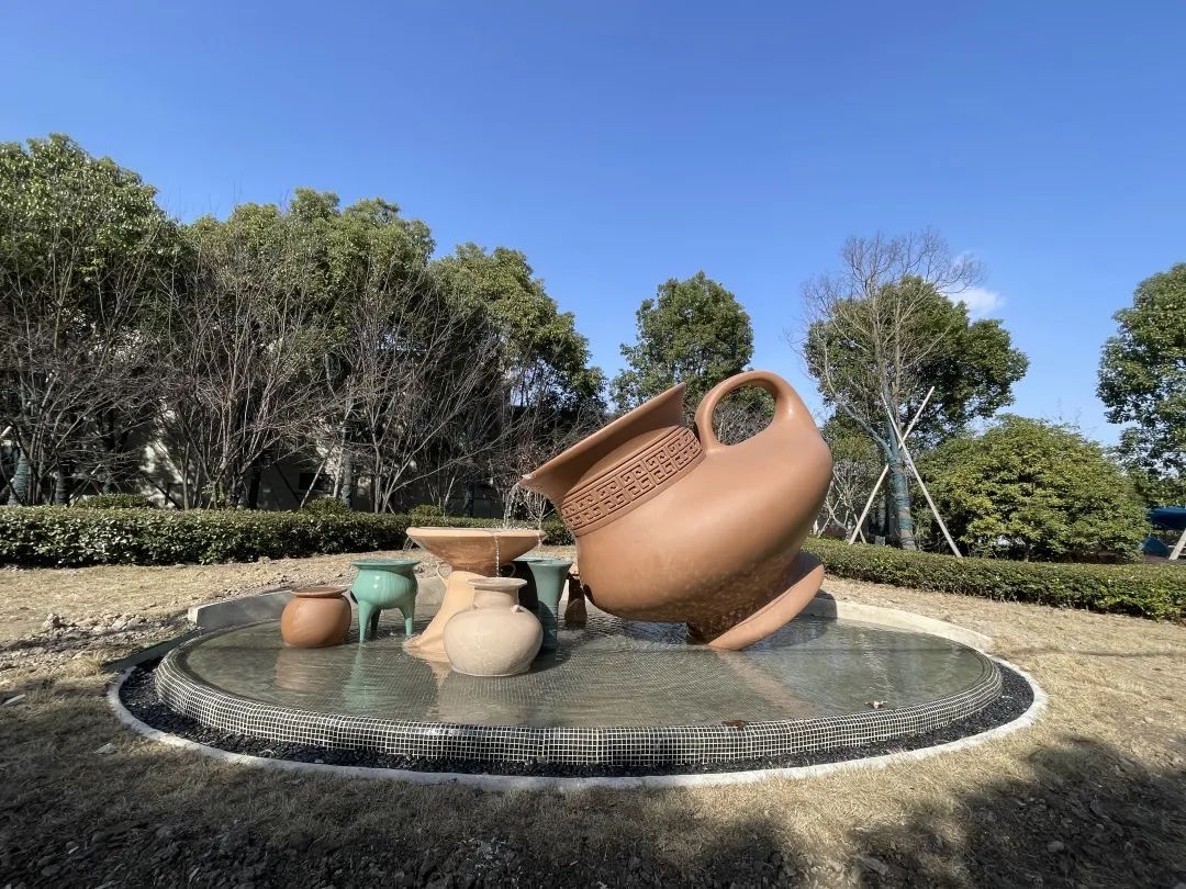 城市雕塑传递的不仅是美学表达,更是历史的遗留、文化的积淀和精神的追求。马桥镇在马桥文化展示馆入口处打造了一组“马桥文化”器皿雕塑,用于展示最具“马桥文化”代表性的器皿形制,确立一个辨识度高、符合马桥特色的历史文化符号,使人们在文化熏陶中获取知识,在艺术享受中受到启迪。