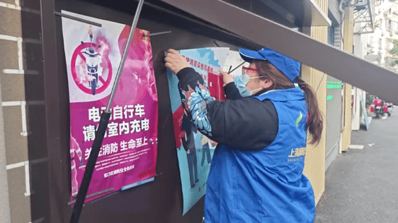 “电动自行车不能停在门厅,我们快把它搬开。”巴林小区老龄人口密度高,“冬季+春节”更是居家用火用电用气高峰,消防志愿者们兵分三路,分别检查非机动车停车库内是否配备灭火器,楼道堆物是否堵塞疏散通道,小区消防车道是否畅通,电动自行车是否存在飞线充电等情况。一旦发现问题,立即上报物业、居委,联系业主整改隐患,织密社区消防安全网,确保居民平安度过佳节。