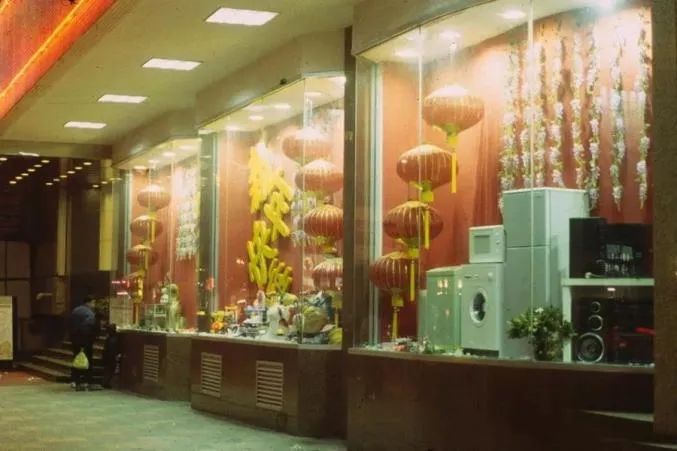 1990年代新春期间,南京东路上海市第一百货商店的橱窗(摄影:陆杰)