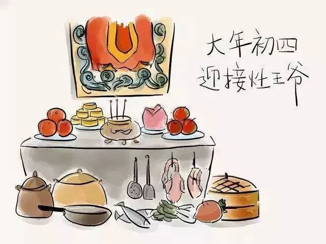 相传大年初四灶王爷要挨家挨户查点户口,因此家家户户都要准备上丰盛的水果守在家里,然后通过焚香、点烛、放鞭炮等一系列活动以表示对灶神的恭迎。