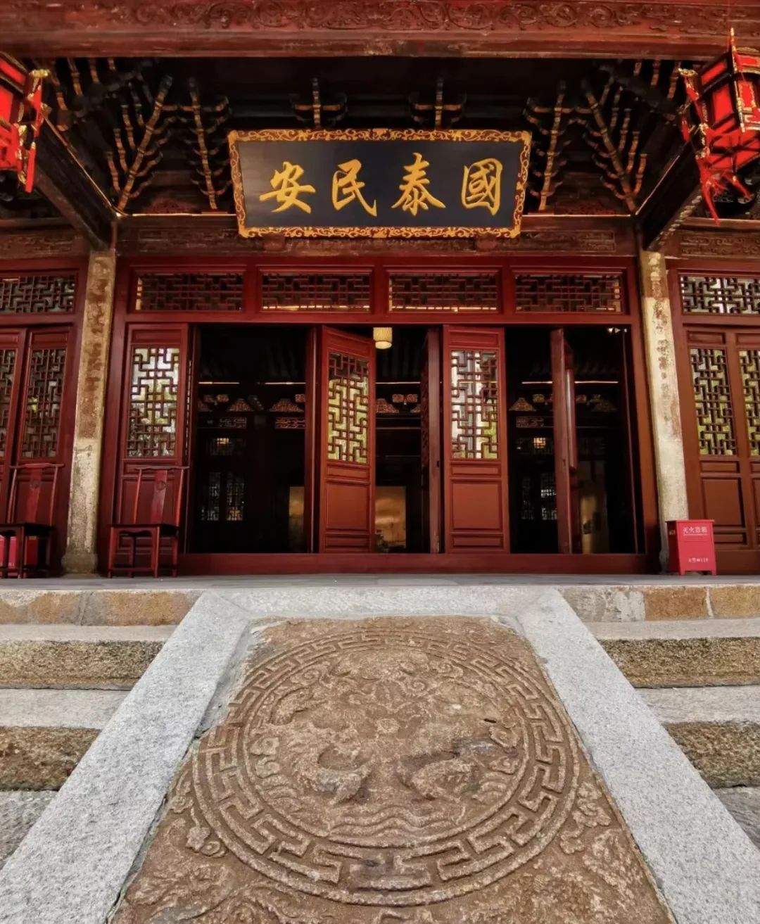 对修缮中挖出的不少老物件,则采用修复归置到原位的办法。如今走进商船会馆,左右墙面两侧各安放了一块石碑,碑文已经模糊不清,在右侧墙边摆放的一块会馆的界石,是施工时从地下挖出来的,目前正联系上海社科院相关专家,查找史料进行修复。而在门外的商船会馆牌匾也另有说法,原本大牌匾旁应有两块小牌匾,由于不知其内容,不能修复,只能空置留白。