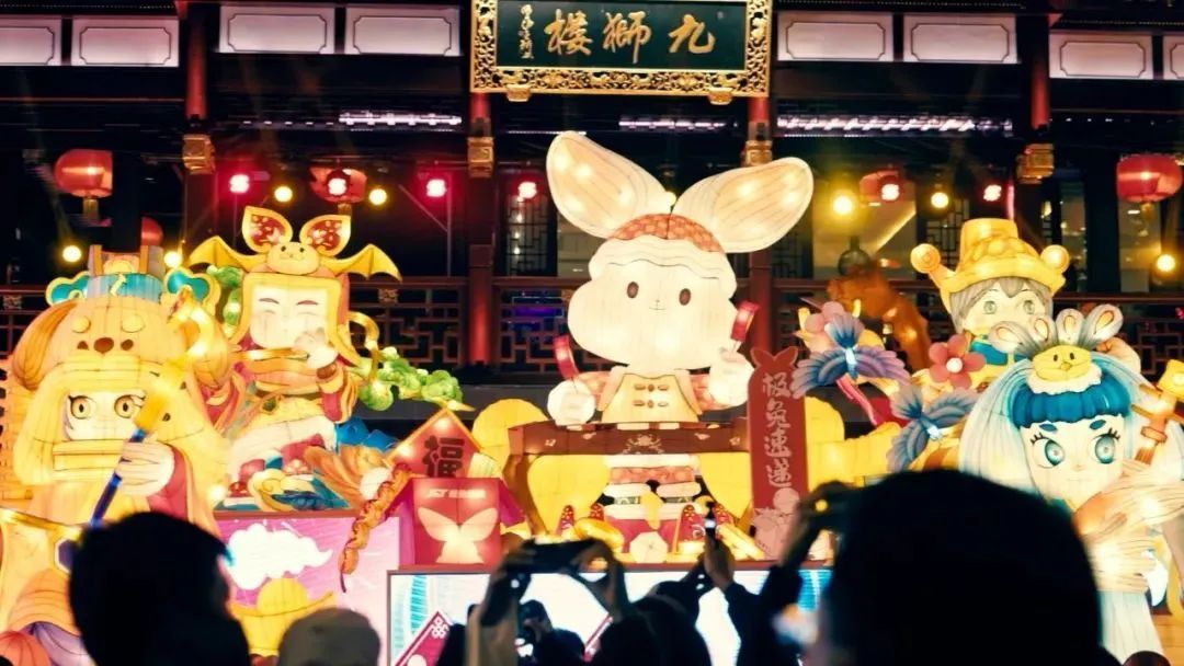 “我们现在到了豫园的黄金广场,这里有一只漂亮的小兔子和它的朋友们一起在演奏音乐。”乐盖曦说,兔子被认为是祥瑞的动物,还有喜鹊、狗、乌龟和蝙蝠。“希望大家在兔年都能平安健康,祝大家兔年快乐!”