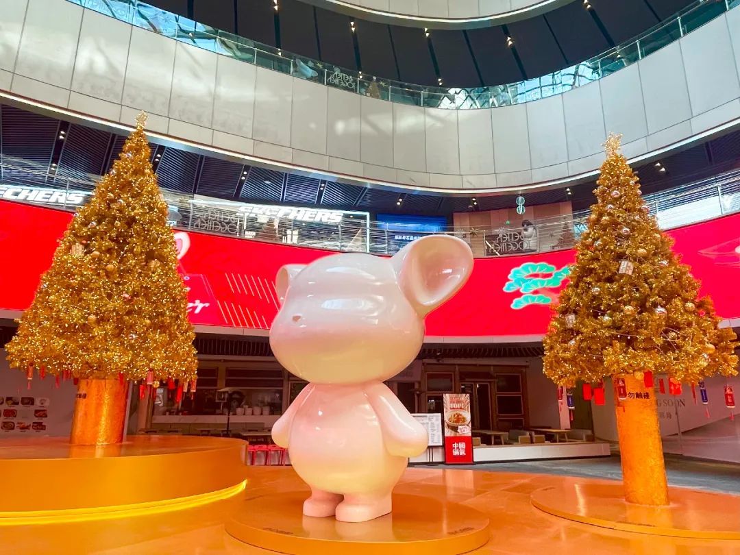 在百联曲阳购物中心,商场打造了兔年全新IP“邻妹妹”,她的身影遍布各个楼层。同时,每个“邻妹妹”又代表着不同的美好寓意,如“兔飞猛进、大展鸿兔、钱兔似锦、阖家欢乐”等。