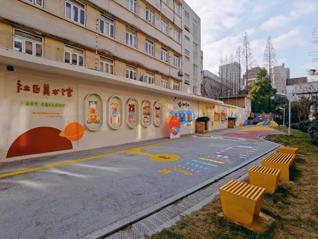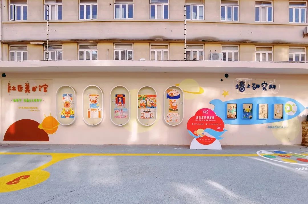 “社区美术馆”的椭圆形设计充满了艺术感,装点其中的画作趣味盎然,不仅美化了社区空间,也成为社区儿童展示才华与梦想的橱窗。