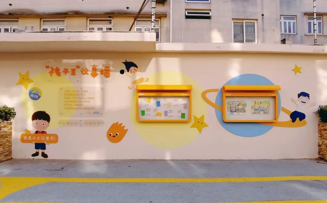 除了空间打造,在崭新的“孩子王”议事墙上,“孩子王”成员们或用稚嫩的笔记,或用流畅的线条,写下对美好社区的提案,勾勒出梦想家园的面貌,成为社区小主人们践行全过程人民民主的新实践。