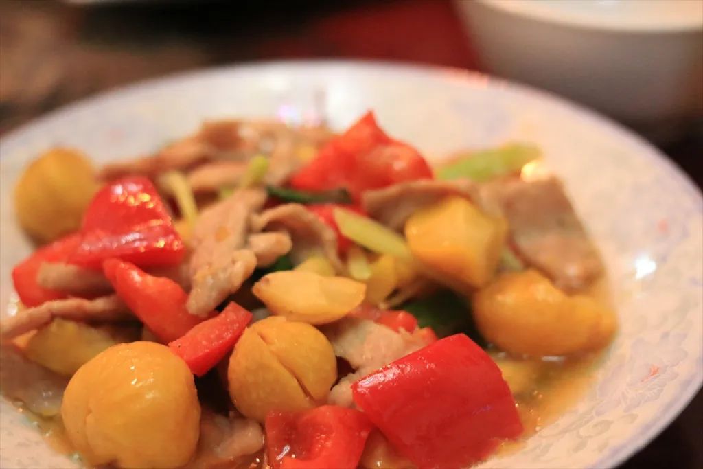 栗焖鮰鱼肚。来自江阴的新鲜鮰鱼肚每位分到半只,但已经硕大到令人讶异了,简单烹饪,厚实,糯软,略微弹牙,入肚后有点撑。拇指大小的栗子糯软香甜,衬出了鱼肚的肥腴。