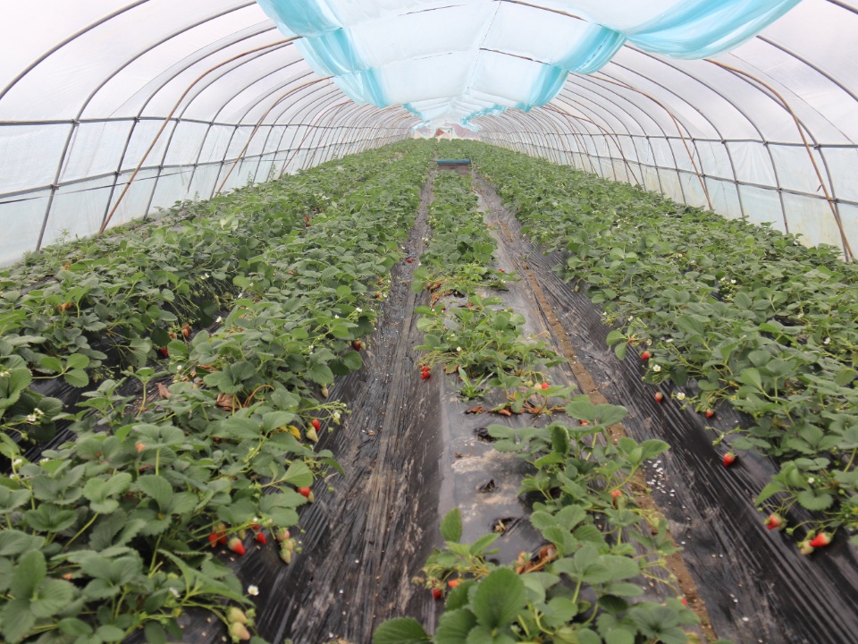 新桥村草莓采摘园目前共有三个草莓大棚,种植面积约3亩,共种有3个品种,分别为“章姬”草莓、“红颜”草莓和市农科院新品种“申鑫”草莓。