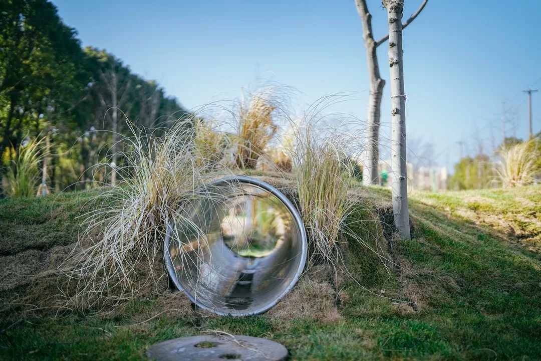 孩子们可以在不规则的半覆土空间中
