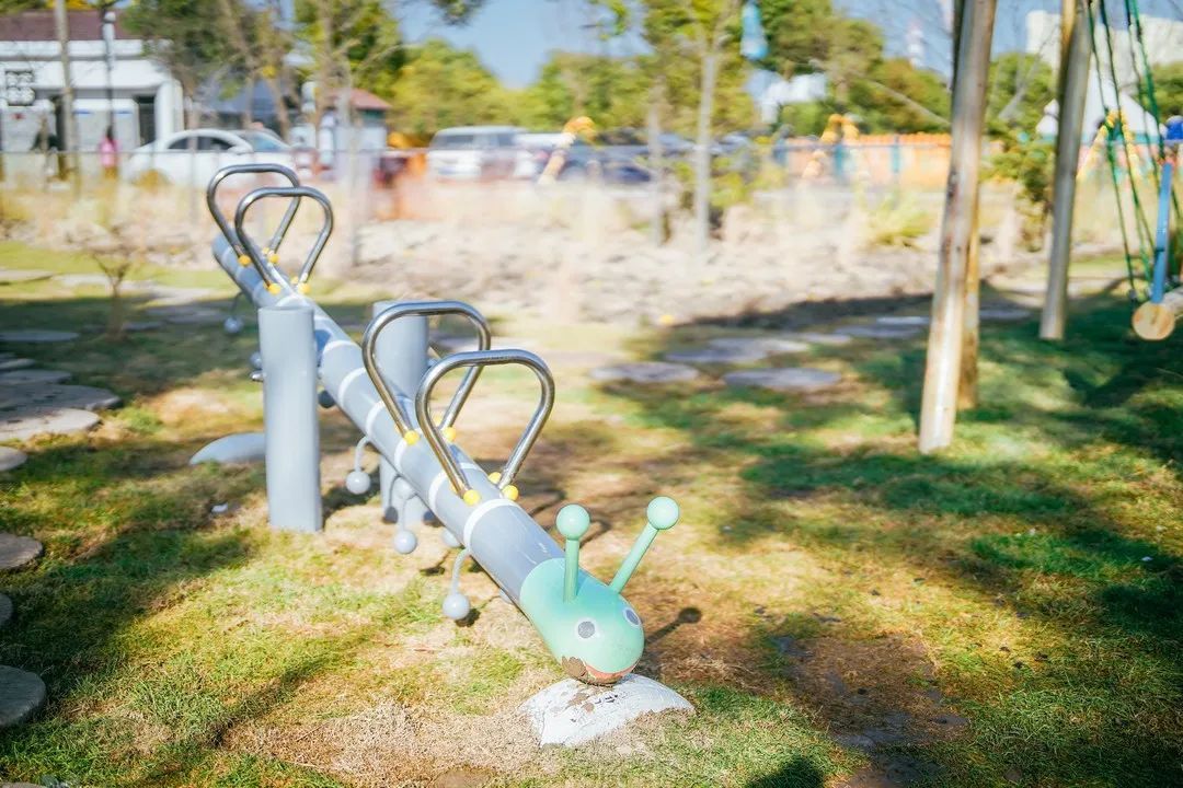 孩子们坐着毛毛虫跷跷板更靠近心里的童话