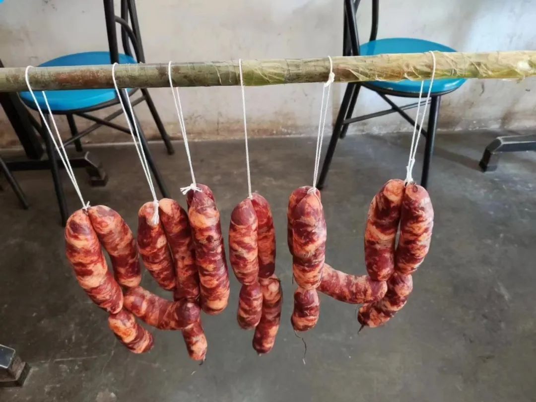 “我们家里做香肠的辣椒面、花椒粉都是自己磨的,还要用柏树熏,当然不是你在外面能做出来的。”大姐笑着在电话里和我说。