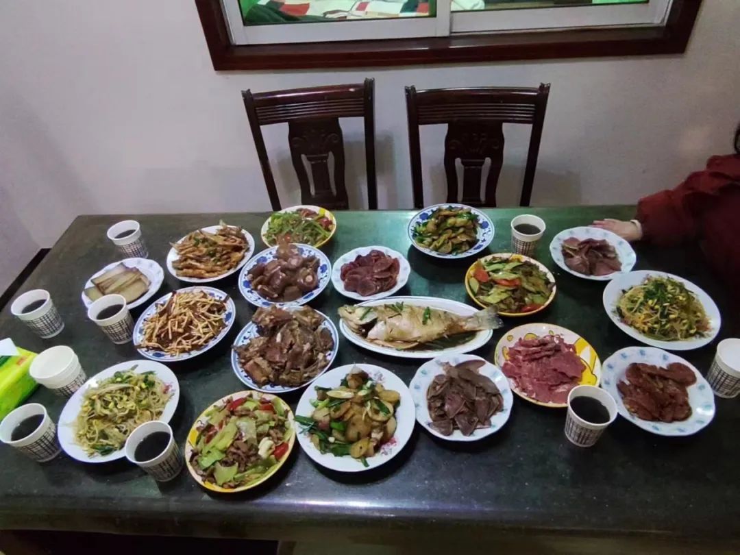 晚上,一家人聚在一起吃年夜饭。我夹起一块香肠放入口中,浓郁的香气瞬间在唇齿间释放,就是这个味儿!我大口咀嚼着这久违的年味,大哥笑着凑过来问:“这菜巴适不?”忙着吃的我回不上话,只能滑稽地连连点头。