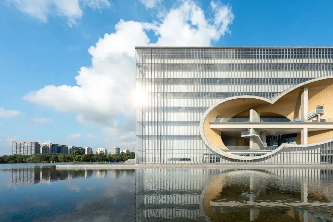 上海保利大剧院坐落于远香湖畔,是安藤忠雄在中国设计的首座大型文化设施项目,也是国内首家拥有水景剧场的剧院。剧院揉汇了国际尖端建筑潮流与传统人文美学精神,营造出一个自然、建筑、艺术、人类彼此和谐相容、自在对话的公共艺术交流空间,以建筑形态与自然环境无间融合为设计理念,水、风、光等自然元素在简单的几何空间中交融并织,幻变出丰富的光影层次,引人遐思。