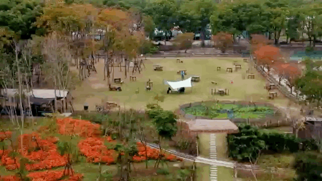沿着澄浏中路往南,小灶村农场的帐篷已经铺开,小鸭子在河中追逐嬉戏,一派田园牧歌的景象。孩子们可以在这里与小动物亲密接触,在花海中徜徉,在草地上奔跑,成为网红亲子打卡地。