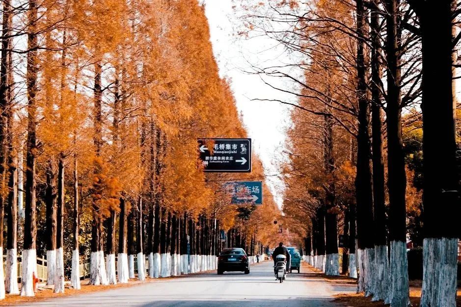 行走于最美乡村路——霜竹公路(嘉行公路—徐星路),即便是萧瑟清冷的冬季,也能让你放慢脚步,迷失沉醉于水杉的气宇轩昂中。