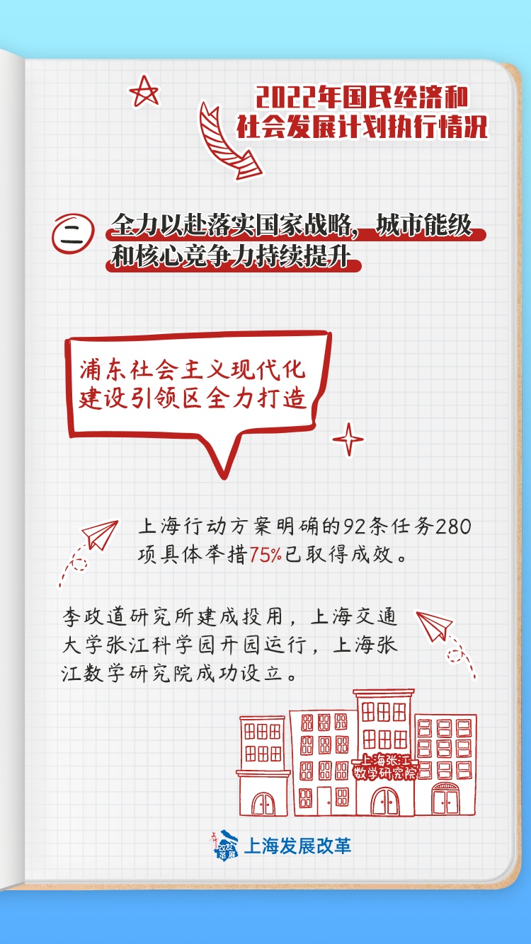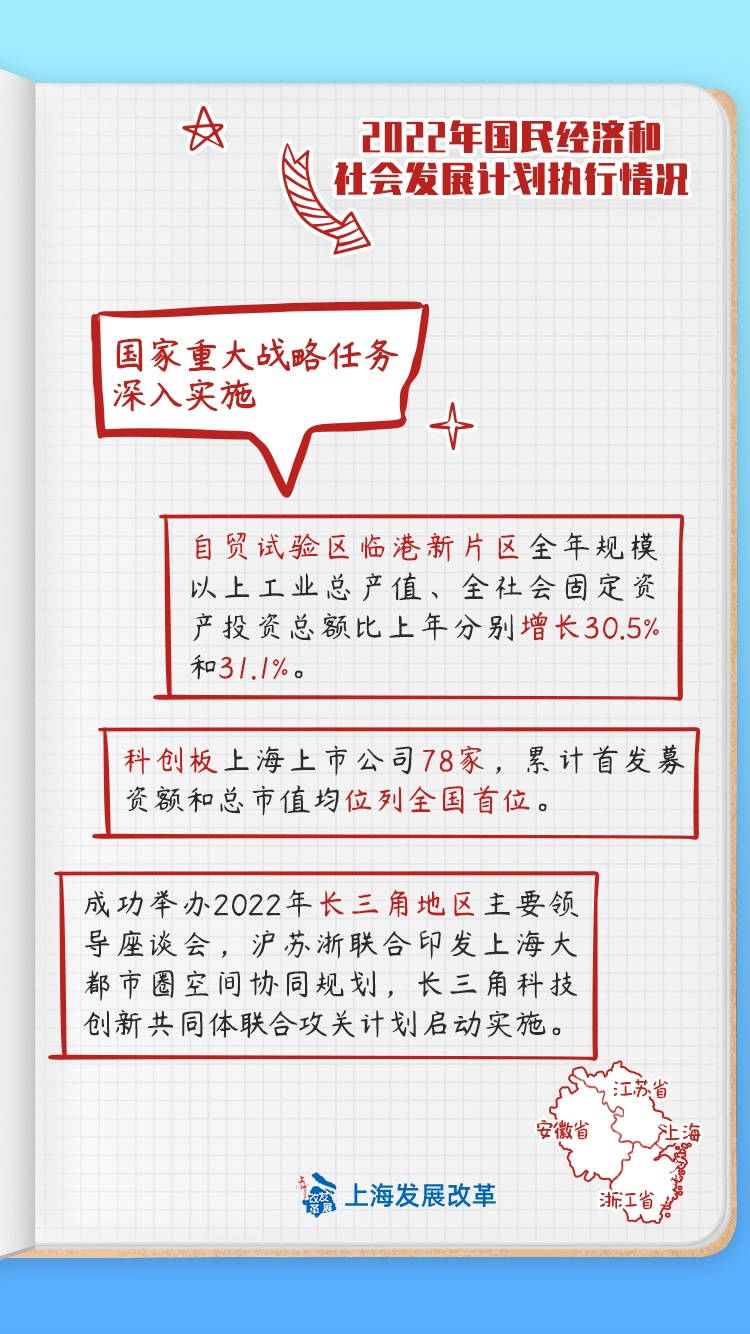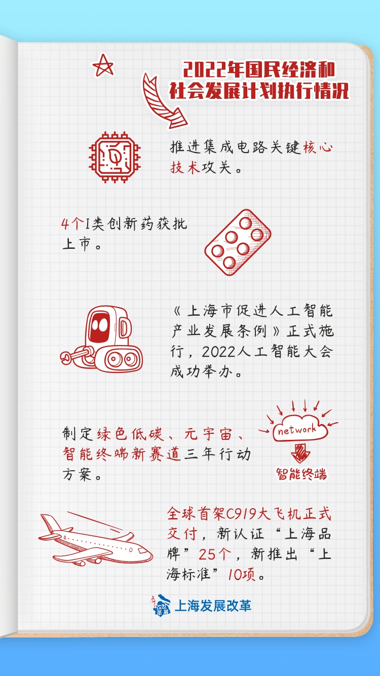上海市第十六届人民代表大会第一次会议审议通过《关于上海市2022年国民经济和社会发展计划执行情况与2023年国民经济和社会发展计划草案的报告》。2022年上海的计划执行情况如何?2023年上海将努力推进哪些重点工作?
