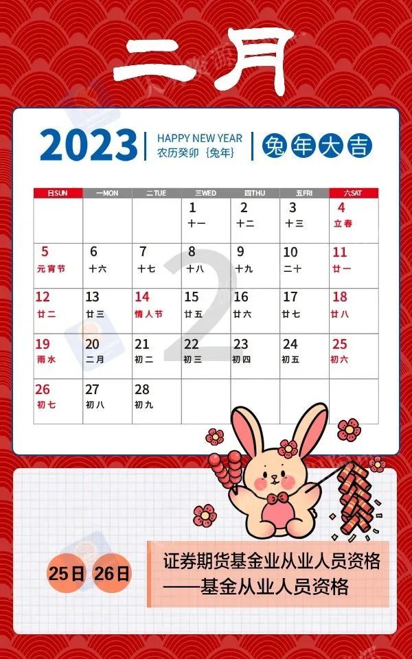 正月初七,开工大吉!收藏这份2023年考试月历,助您大展宏“兔”!