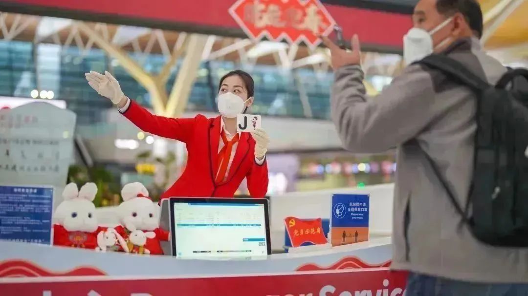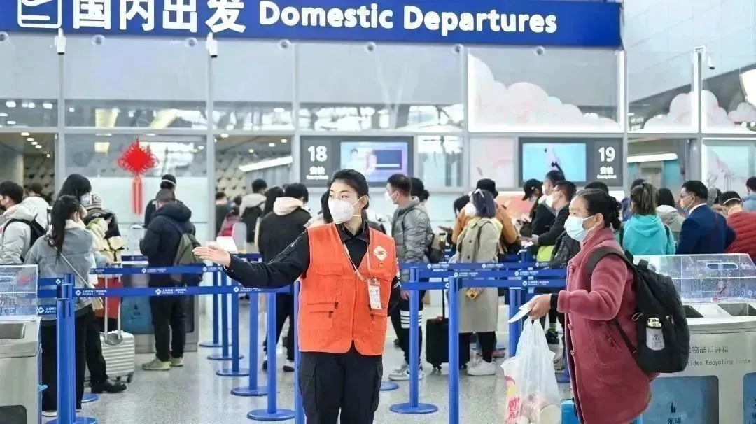上海两大机场真情服务温暖广大旅客回家之路,根据现场旅客排队情况,动态调整值机柜台和安检通道数量,减少旅客等待时间。