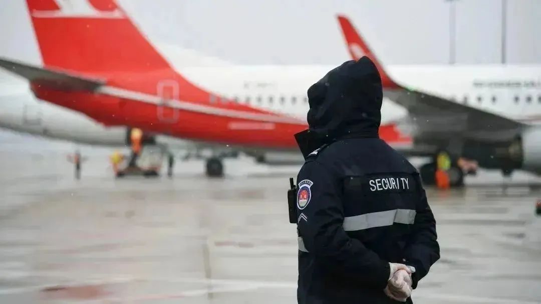 虹桥机场安检飞机监护员不畏严寒始终坚守岗位↑