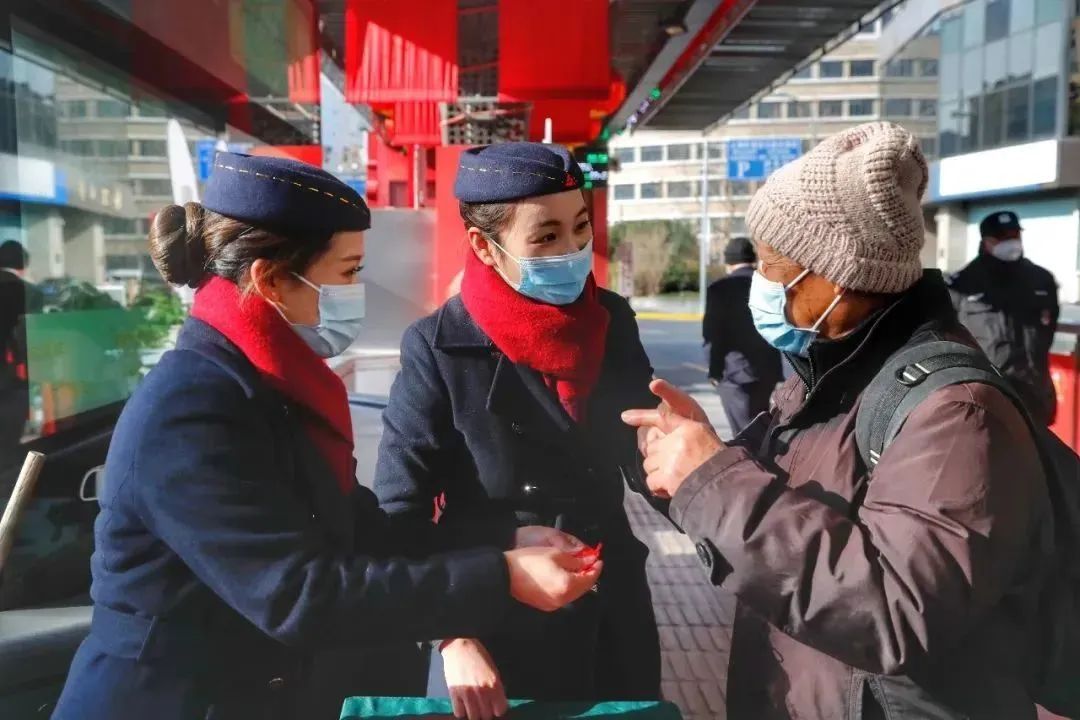 在人流密集的火车站、集散中心公交枢纽站内,青年志愿者积极提供导乘咨询服务,并开展防疫“三件套”和防护“五还要”宣传,提醒过往乘客注意个人防护。