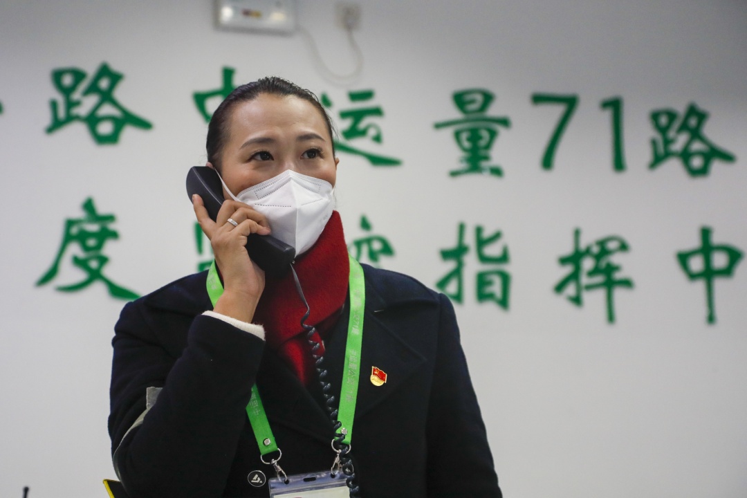 作为71路中运量车队唯一一名女安管员,巴士三公司的毛礼蓓已连续六年服务春运。每逢春节期间,中运量71路必定是“高朋满座”,为确保线路驾驶员安全行驶和乘务员的规范服务,她总是坚守申昆路枢纽车队大屏监控中心,将乘客平安送抵回家是她义不容辞的职责。