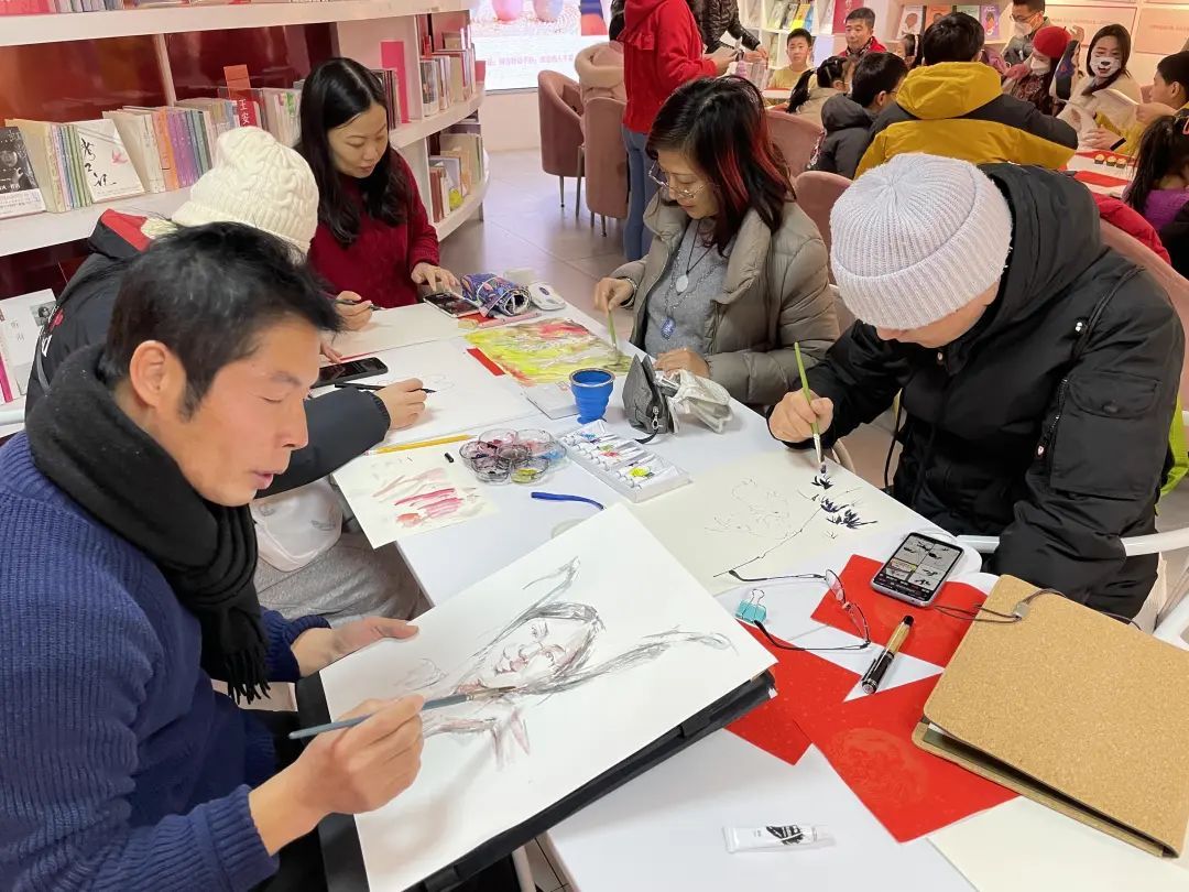 值得一提的是,当天下午,工艺美术师、“地铁速写哥”金伯文等艺术家也来到了活动现场,他们用笔触记录下亲子互动感人瞬间,上色后的作品吸引了家长和孩子们的注意,大家纷纷为速写和中国画的魅力点赞。