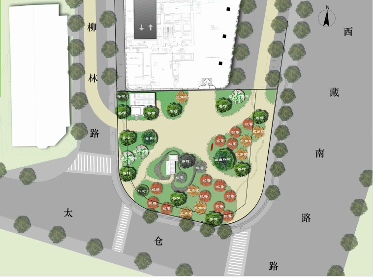 启园,毗邻西藏南路、太仓东路和柳林路,占地面积约2000平方米。“启”,意为“初心始发”,旨在激励大家踔厉奋发、勇毅前行。