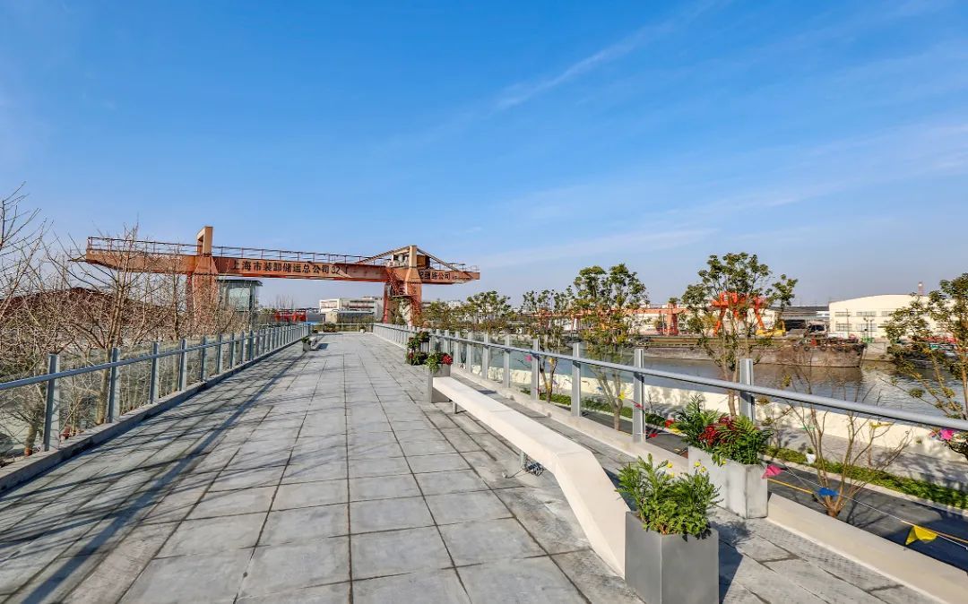 园区内拥有超1.2公里沿河岸线,依托工业原址保留的七个塔吊建造了上海首个星空高线公园,滨河健身步道、古琴湖、大提琴观景台、音乐喷泉等可供驻足观赏河畔两岸风光的新景观亮点,每一处建筑与周围风景相互映衬,如诗如画。
