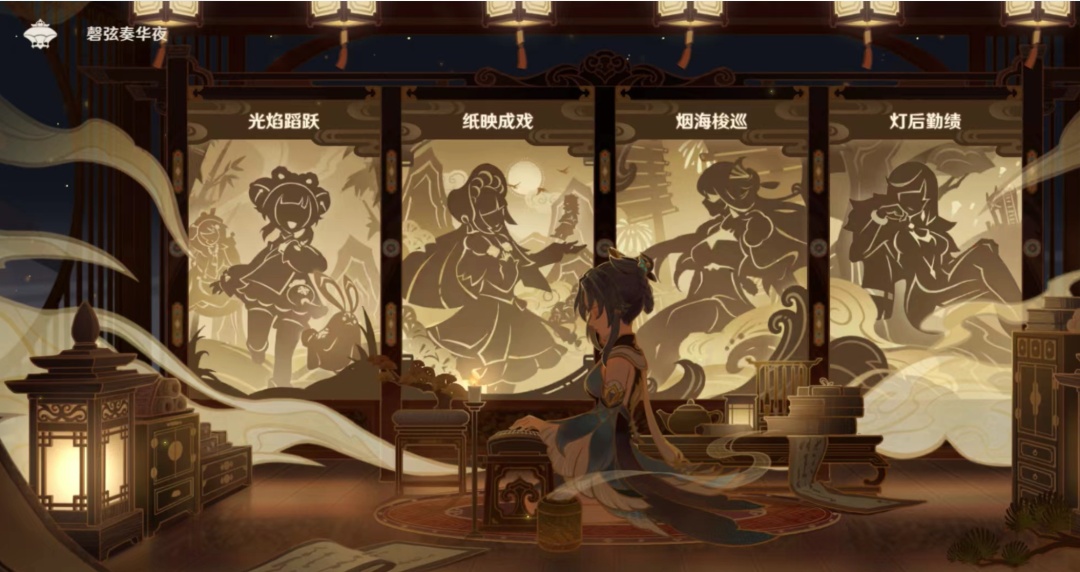 2023年春节期间,米哈游旗下开放世界冒险游戏《原神》推出全新3.4版本“磬弦奏华夜”,以春节及元宵为参考而设计的璃月节日海灯节正在举行,以皮影戏为灵感设计的解谜玩法“纸映戏”也正在“上演”。在幻想世界之外,官方还发布了新春短片《鱼灯》和《流光拾遗之旅》木版年画非遗纪录片,展现民间智慧的非遗技艺,并以《原神》游戏中的“五夜叉”为题材,展现了刻印年画作品的过程。