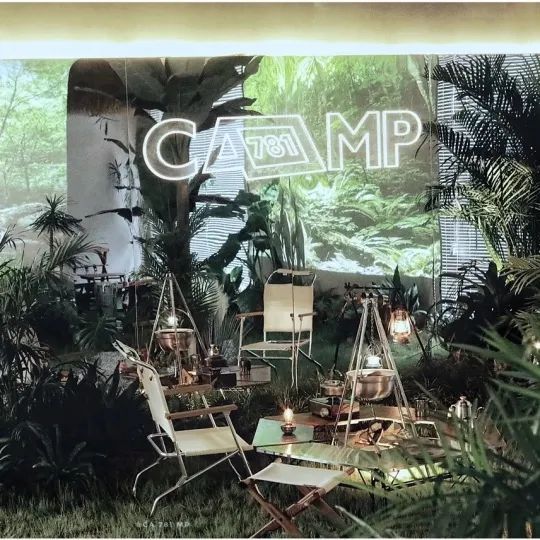 CAMP781是沪上最早开设的露营咖啡馆之一,同样分为室内和室外两部分,室内种满绿植,室外有大片的天然草坪,布置了营灯、帐篷、火炉、烧烤架等全套野营设备。