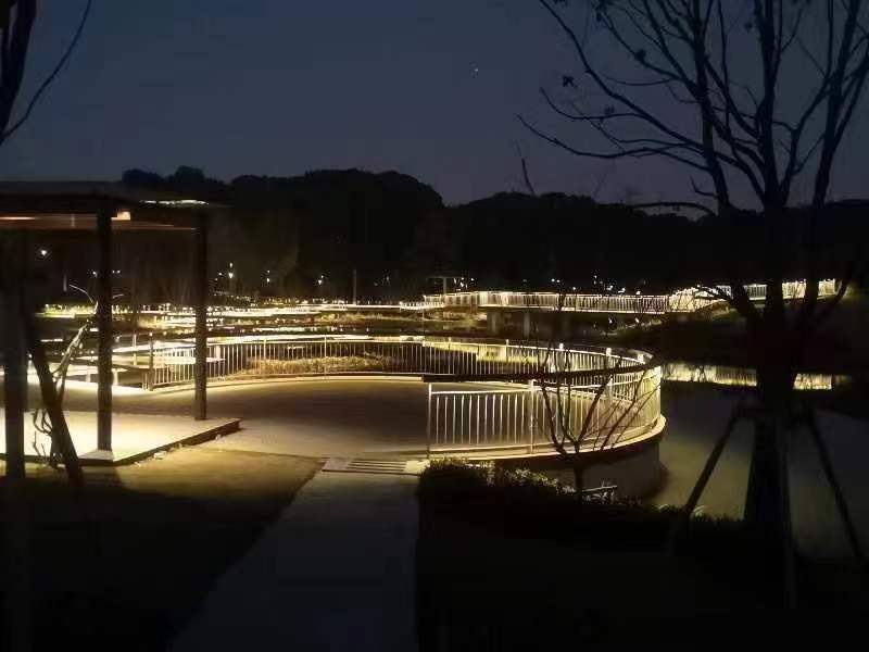 公园在主园路、栈道及景观节点都进行了亮化,灯光点缀在林间、水岸栈桥,不仅丰富了公园夜景,也保证了夜间照明与安全。除了照明设施,公园还安装了智慧监控、一键求助等管理服务设施,将进一步提升公园的管理服务水平。