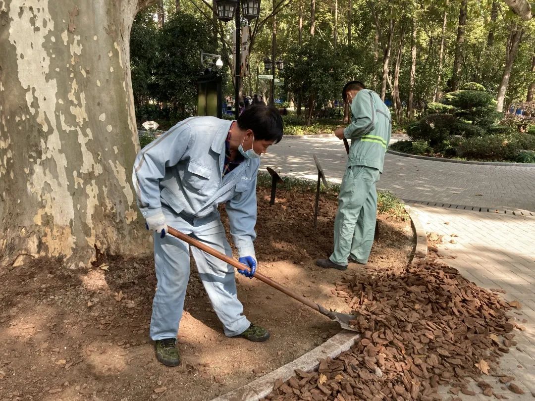 此外,园方还对5株古树进行了土壤改良,将原有偏碱性覆盖物火山岩更换为中性的树皮。对下部植被密闭的古树进行下木的抽稀整理,为古树创造良好的通风采光条件,留出充足的生长空间。相信在市、区绿化管理部门的关心指导和公园管理养护方的细心呵护下,复兴公园古树群将在新的一年里健康生长,不断焕发生机。