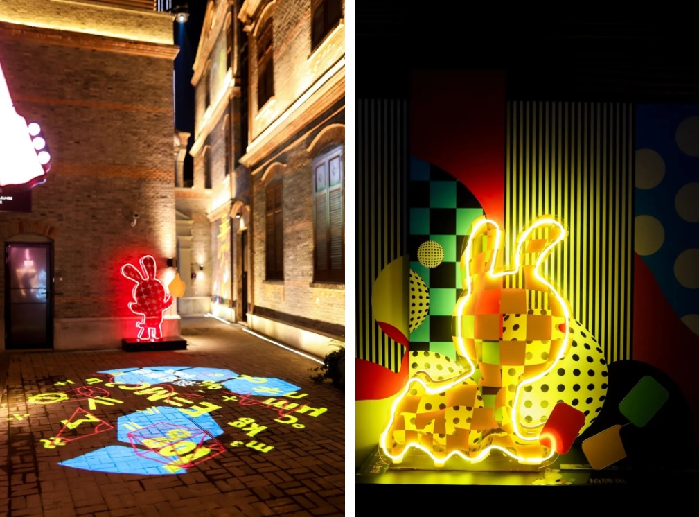 今朝8弄里,在66栋老建筑和8条弄堂所组成的空间里,18组身着特色新装的潮兔们,用自己时尚可爱的身影,让你体验到一种传统花灯结合现代科技的全新赏灯游览体验模式。