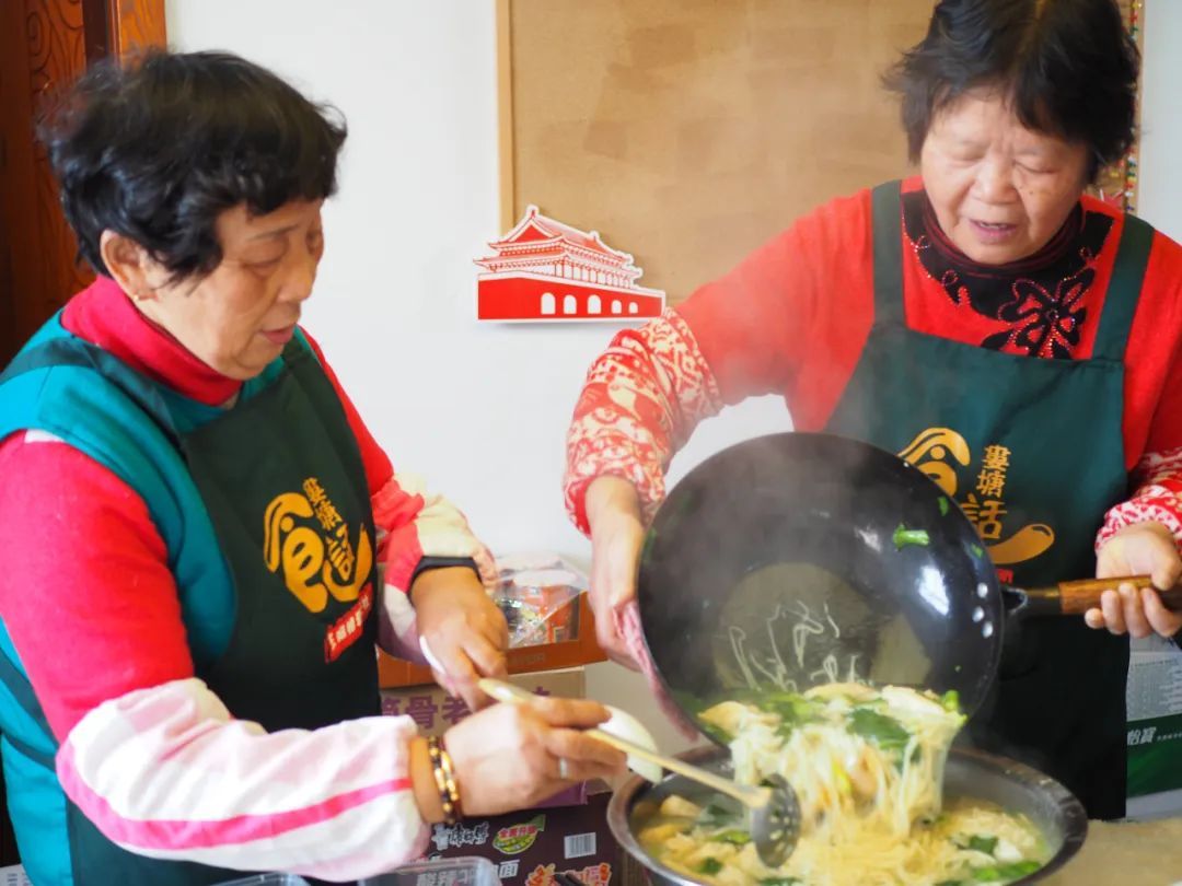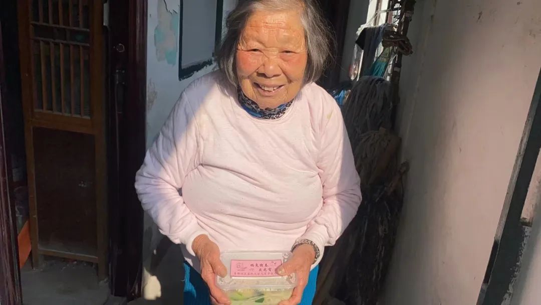在热气蒸腾中,一碗碗贺年羹出锅了,社区工作人员趁热将它们送到社区独居老人家中。老人高兰英打开门,看到热气腾腾的汤羹就在眼前,心中十分感动:“这份心意很温暖。”
