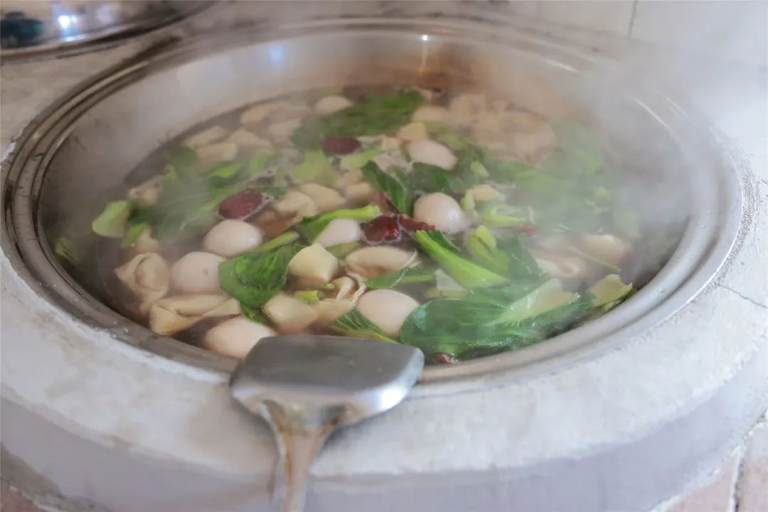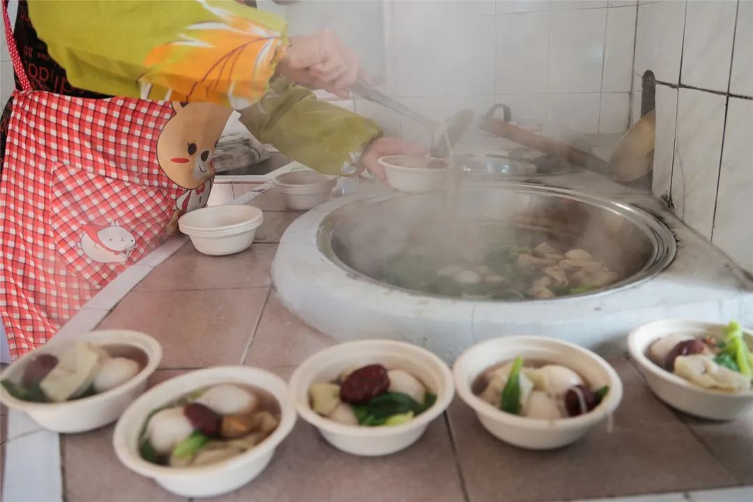 洗菜、剁馅、和面、烧火……2月1日,左邻右舍走进徐行镇劳动村村民张秀娟家的厨房,聚在一起包汤圆、馄饨,说说笑笑好不热闹。很快,一只只白胖的汤圆、元宝状的馄饨就齐活了。张秀娟表示,以前贺年羹是把过年的剩菜剩饭做成大锅烩,现在生活条件好了,食材也越来越丰富,吃贺年羹图的就是个热闹。