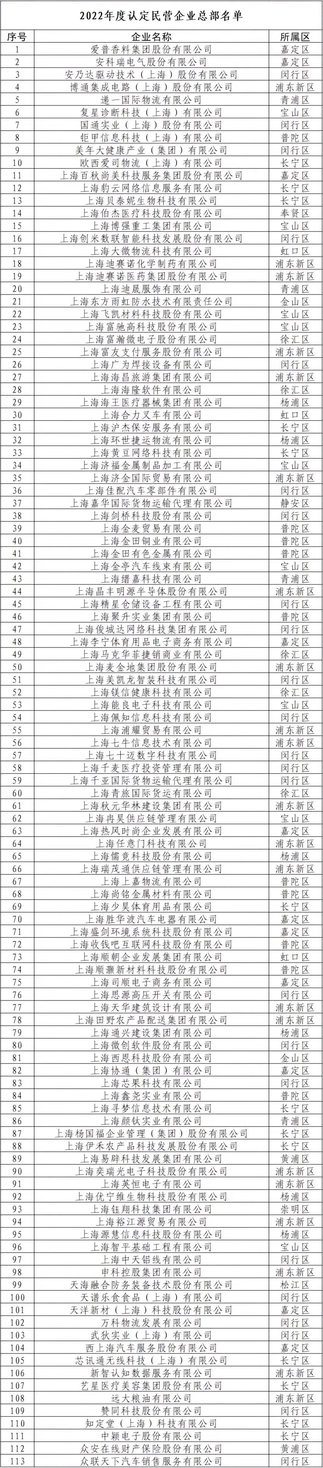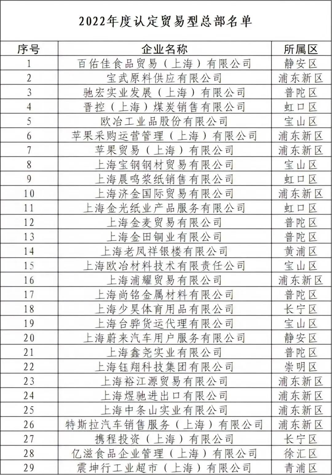 市商务委介绍,为进一步优化本市民营企业总部营商环境与本市贸易型总部营商环境,根据《上海市鼓励设立民营企业总部的若干意见》,经审定,现认定爱普香料集团股份有限公司等113家企业为民营企业总部。根据《上海市鼓励企业设立贸易型总部的若干意见》,经审定,现认定百佑佳食品贸易(上海)有限公司等29家企业为贸易型总部。名单详见↓
