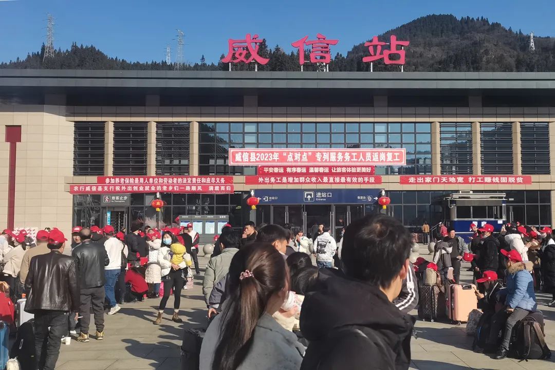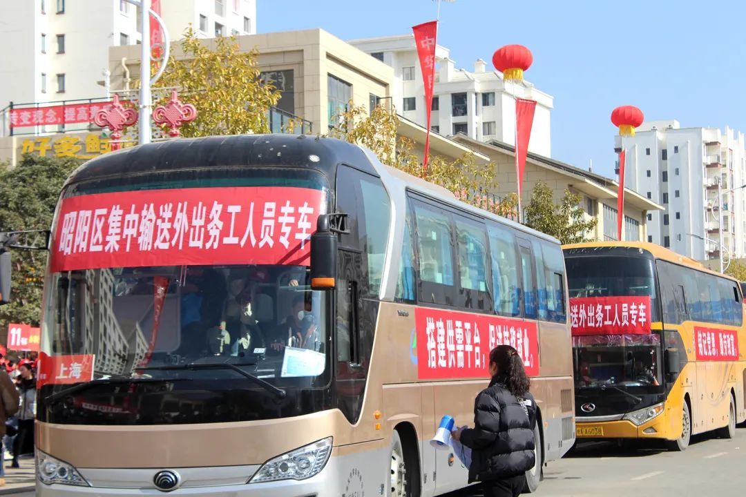 1月29日,上海松江-云南昭通2023年首批“点对点”劳务输送工作正式启动,昭阳区31名务工人员乘坐大巴车驶向上海返岗复工,威信县240余名务工人员乘坐首趟务工定制专列返沪就业。