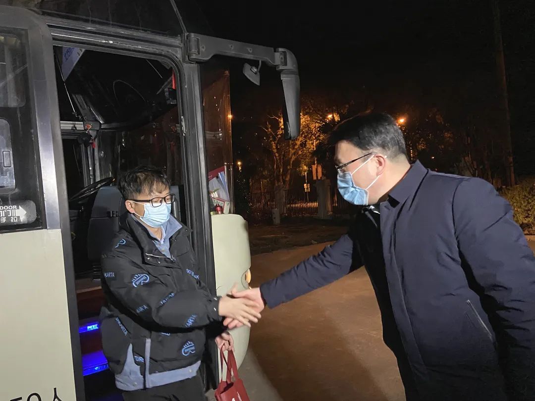 1月31日晚,载着30余名员工的大巴车顺利从成都抵达松江,上海倍莱弗科技有限公司迎回节后返岗员工。该公司为松江区首家通过包车跨省“点对点”接员工返岗复工的企业,松江区人社局副局长马守亮等至公司所在地迎接返松员工。