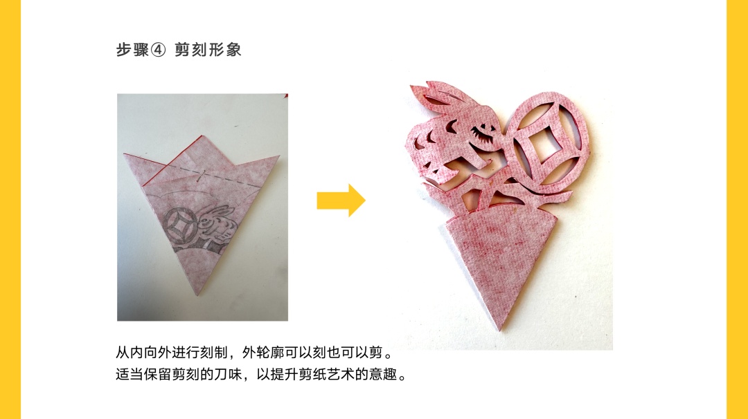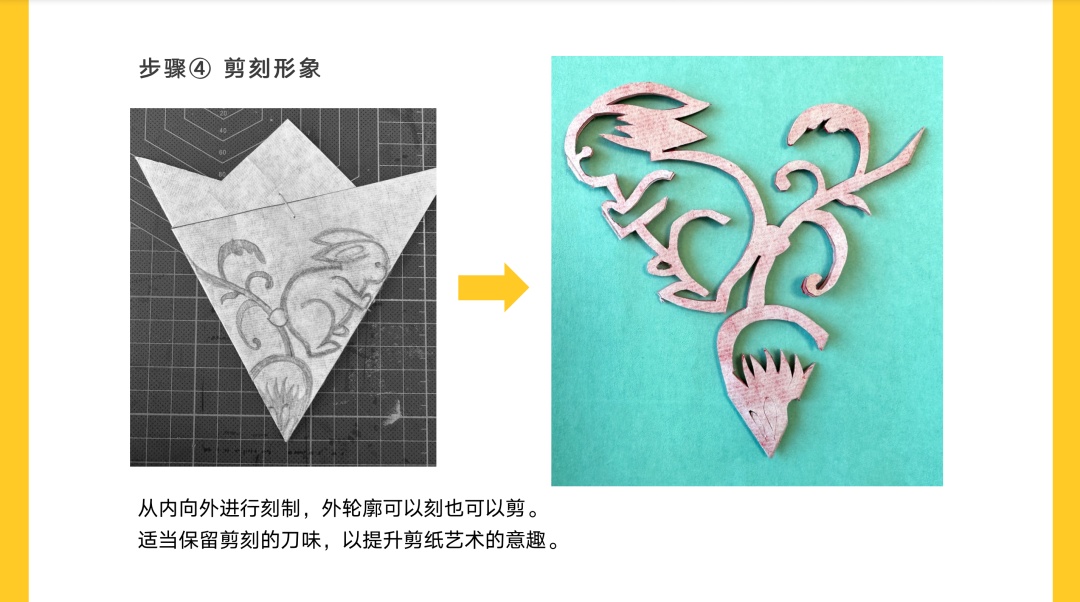 为了方便剪刻,将原本兔子身上的云纹简化为半月形。