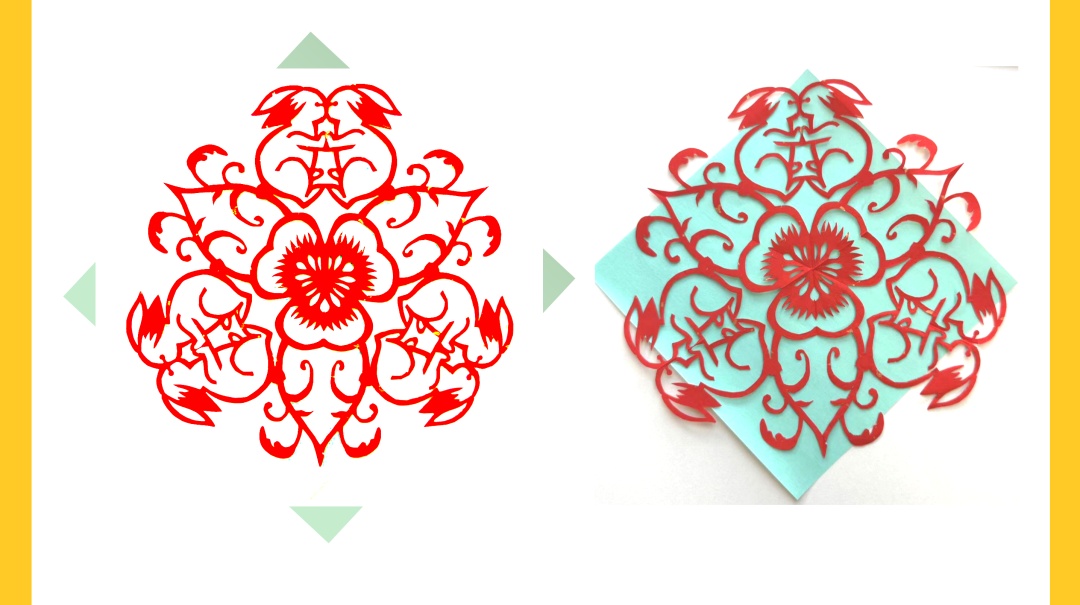剪纸(paper cut)就是用剪刀或刻刀在纸上剪刻形象。在汉代已用丝、绢、帛等材料剪花样了。西汉之后,随着纸的发明与普及,剪纸在民间逐步流传。剪纸常用于民间节庆、民宿活动,寄托着人们对美好生活的祈愿和向往。