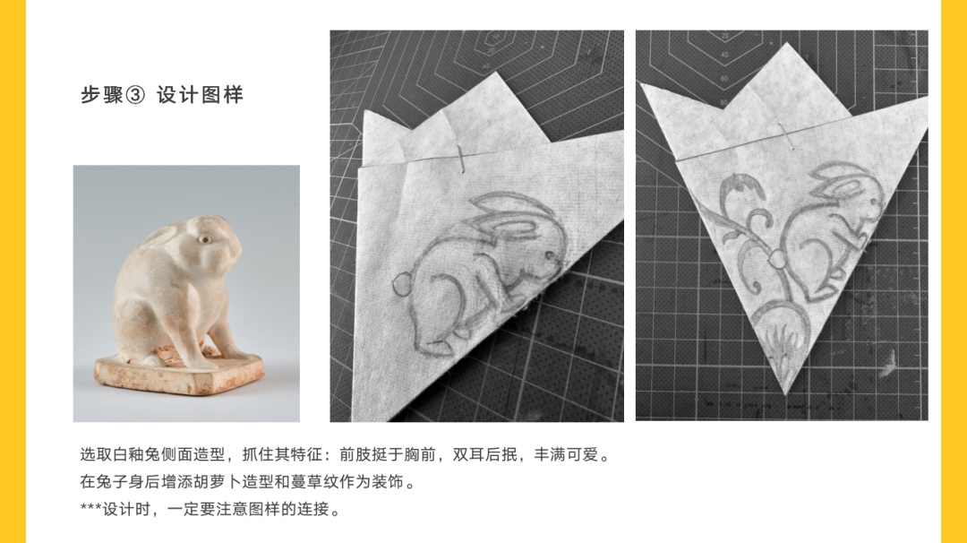 在兔子下方,再添加象征萝卜缨的纹样。