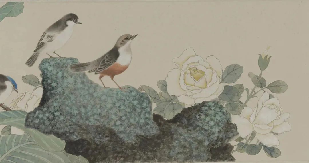 (左上)江寒汀《百禽图卷》(上海博物馆藏)