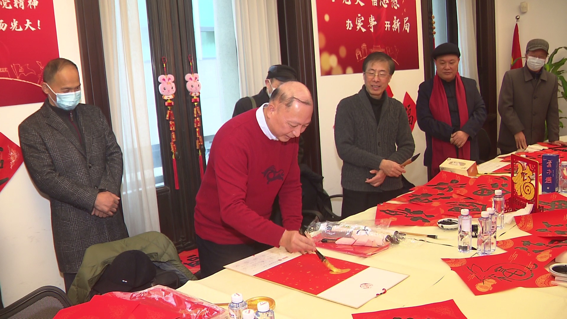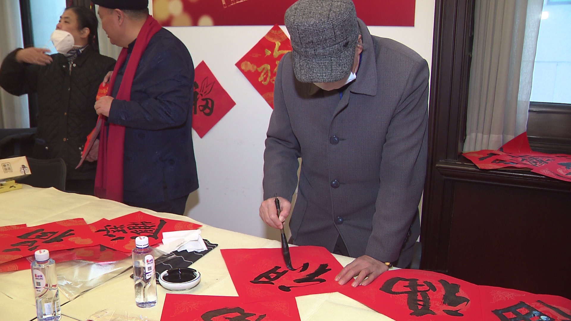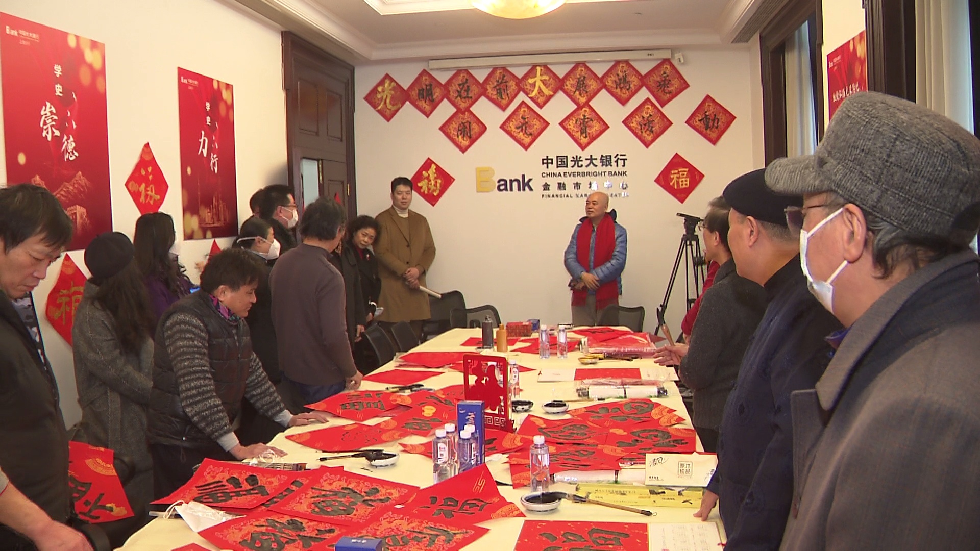 活动中,来自光大银行、黄浦区书法家协会的10多位书法家现场挥毫,向科技工作者赠送福字、春联。