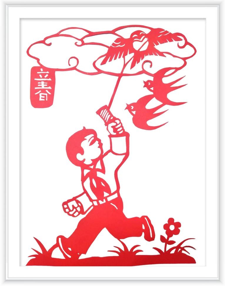 春日暖阳下飞舞的风筝随着东风飘扬,新的气韵充盈在天地之间,希望能够通过这幅剪纸作品,让大家共同感受春的美感,传递春的气韵,放飞春的希望。
