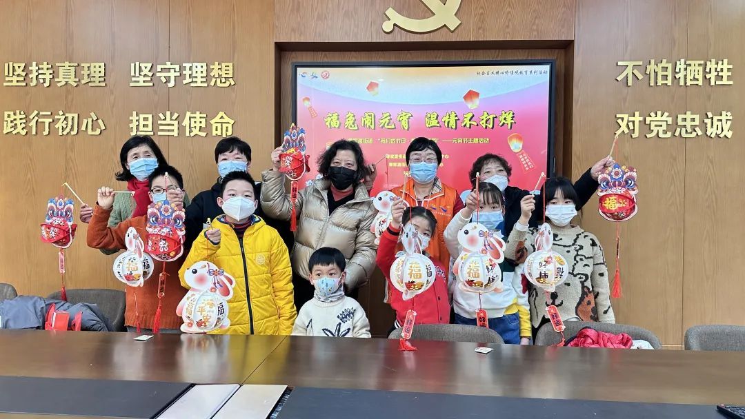 曹家渡街道新时代文明实践分中心联合街道社区志愿服务中心开展了“福兔闹元宵 温情不打烊”主题活动。本次活动由“闹元宵 灯谜来过招”和“做灯笼 温情不打烊”两部分组成,让居民志愿者和社区学生以亲子家庭的方式在党群阵地上感受传统佳节的丰富内涵、领略传统文化的独特魅力。