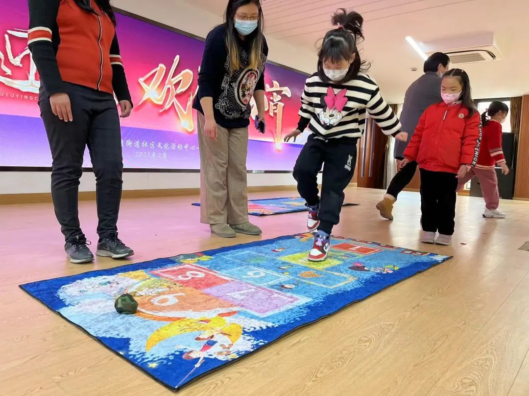 街道社区文化活动中心内,举办了老少咸宜的“玉兔迎春 欢度元宵”主题文化活动,不仅有猜灯谜、做汤圆等传统节目,套圈圈、踢毽子等弄堂游戏也吸引了不少“爷孙”组合登场,孩子们为集齐5个不同关卡的印章,跃跃欲试。