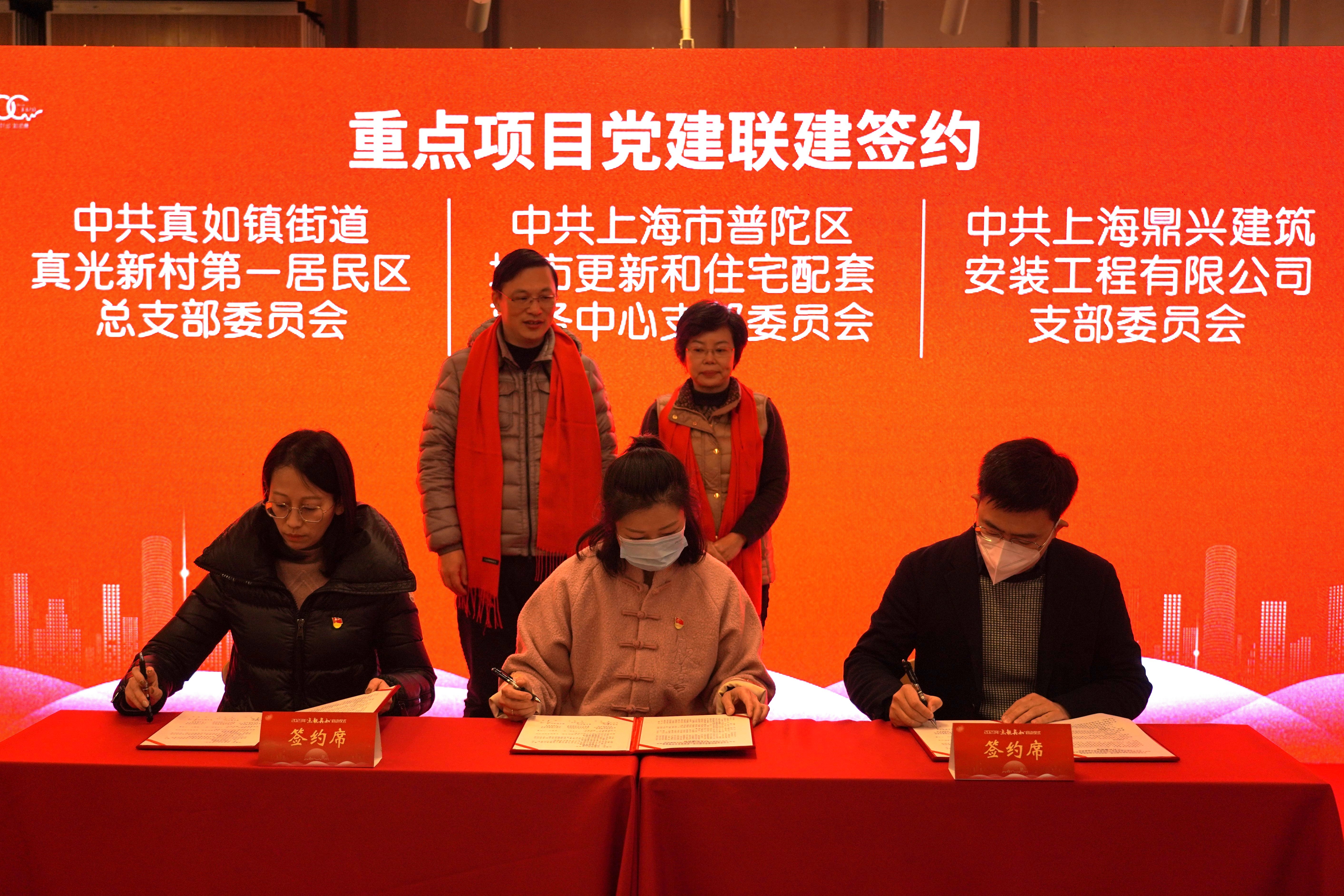 现场还举行了重点项目党建联建签约仪式。“今天区建管委、绿容局、房管局下属三家单位和我们三个居民区分别进行签约,未来我们将在提升区域环境品质和小区宜居面貌等方面进行更深层次的交流合作,与各兄弟单位一起拼、一起干。”真如镇街道管理办主任刘轶豪介绍,城市更新和住宅配套事务中心支部委员会、鼎兴建筑安装工程有限公司支部委员会与真光新村第一居民区总支部委员会进行了党建联建签约,涉及真光新秀小区综合修缮,将为更多居民带来房屋立面更加靓丽、楼道更加整洁、公共空间更加舒适的宜居生活环境。