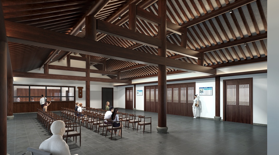 中医堂则以中式风格为总基调,规划设置中医教学室、中医展示厅、中药房、中医诊室、理疗室、中医针灸室、中医推拿室等。